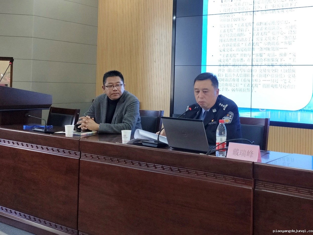 戴瑞峰所长首先给同学们做了一场关于防范各类诈骗,保障人身财产安全的专题讲座。讲座分析了大学生最易遭遇的诈骗类型——通讯网络诈骗。他指出,通讯网络诈骗中最常见的有刷单诈骗、购物诈骗、网络贷款诈骗、冒充公检法诈骗和游戏装备诈骗等,并详细介绍了相关案例、作案手段、相应的防范措施和被骗后的处置方法,起到了良好的警示教育效果。同时戴所长还对同学们在外出人身安全、公寓钱物及消防安全等方面做出了提醒和教育,总结了“五要五不”的安全防范口诀,贴近学生生活,通俗易懂。