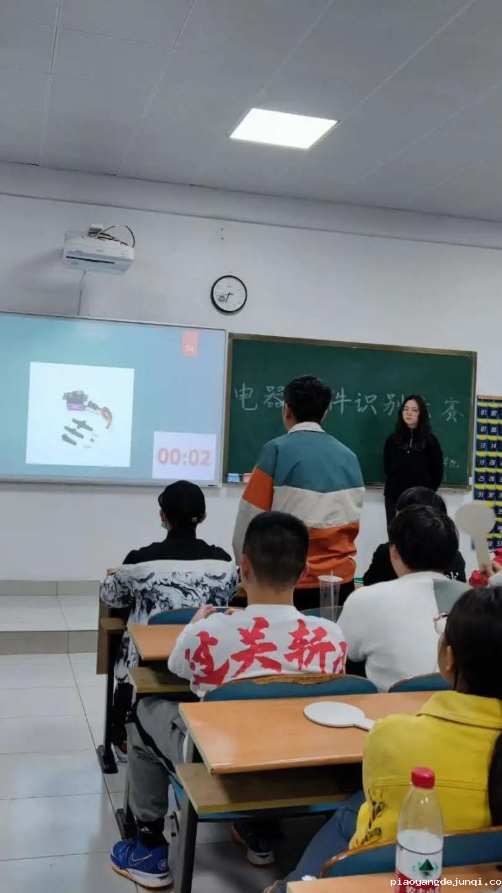 随着答题数的提升,后面题目的难度逐渐提高,一时间,现场气氛紧张了起来。这时出题人给出的题目似乎难倒了参赛同学们,就在大家准备放弃时,有同学瞬间举牌说出了答案,大家先是一愣,随后不由都佩服地鼓起了掌,这时现场气氛也达到了高潮。遇到同学们无法回答的问题时,主持人会公布答案,同时对该电子元件的用途作简单介绍,让同学们对它有更深地了解,使竞赛增添了学习的过程。经过一个多小时的抢答环节,所有题目也全都答完了,但是大家却丝毫不见疲惫,有点意犹未尽。