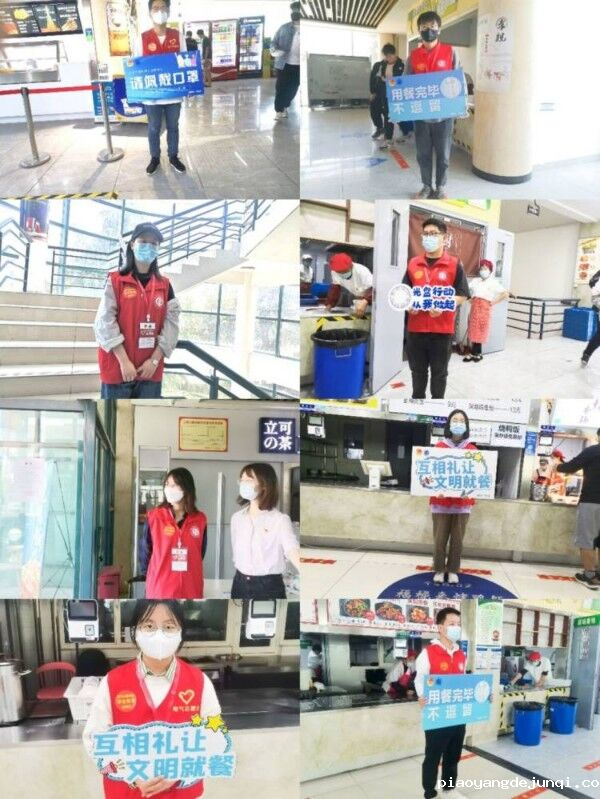 学生党员、入党积极分子积极行动,用自己的行动为同学们树起标杆,用坚守诠释党员精神的担当。他们穿着红色马甲,站在自己服务区域内积极主动引导学生排队保持1米安全距离、提醒同学们不聚集、文明就餐。